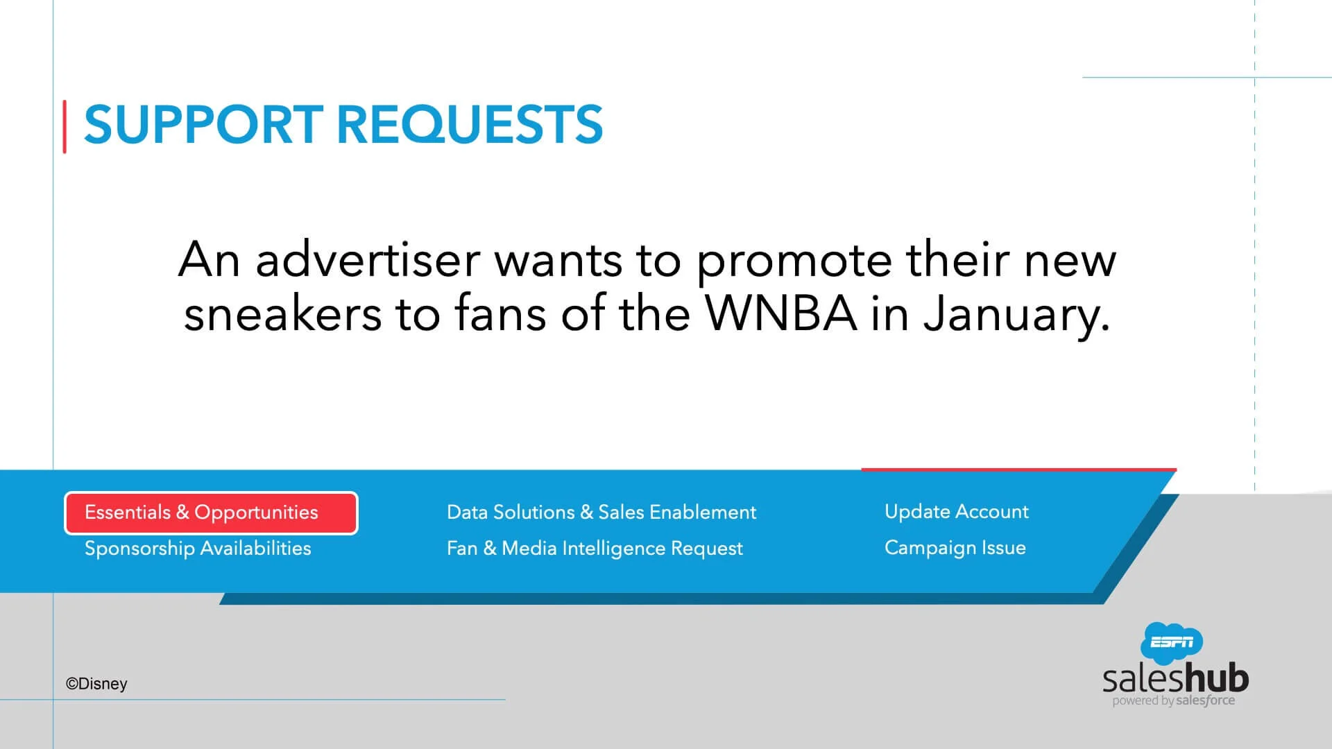 During the Fall of 2017, I created and developed training collateral for ESPN's Sales class on the implementation of Salesforce. From start to finish, this project was developed and implemented in a 16 day time period. Below is the process and completion of the entire class.