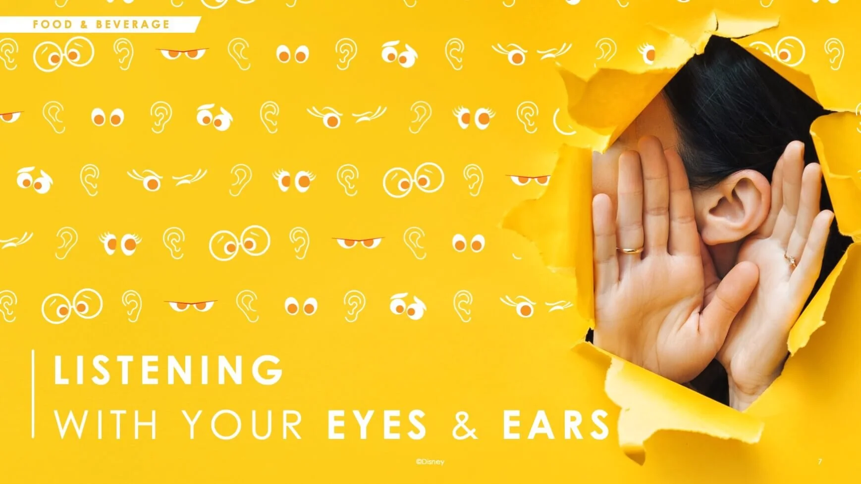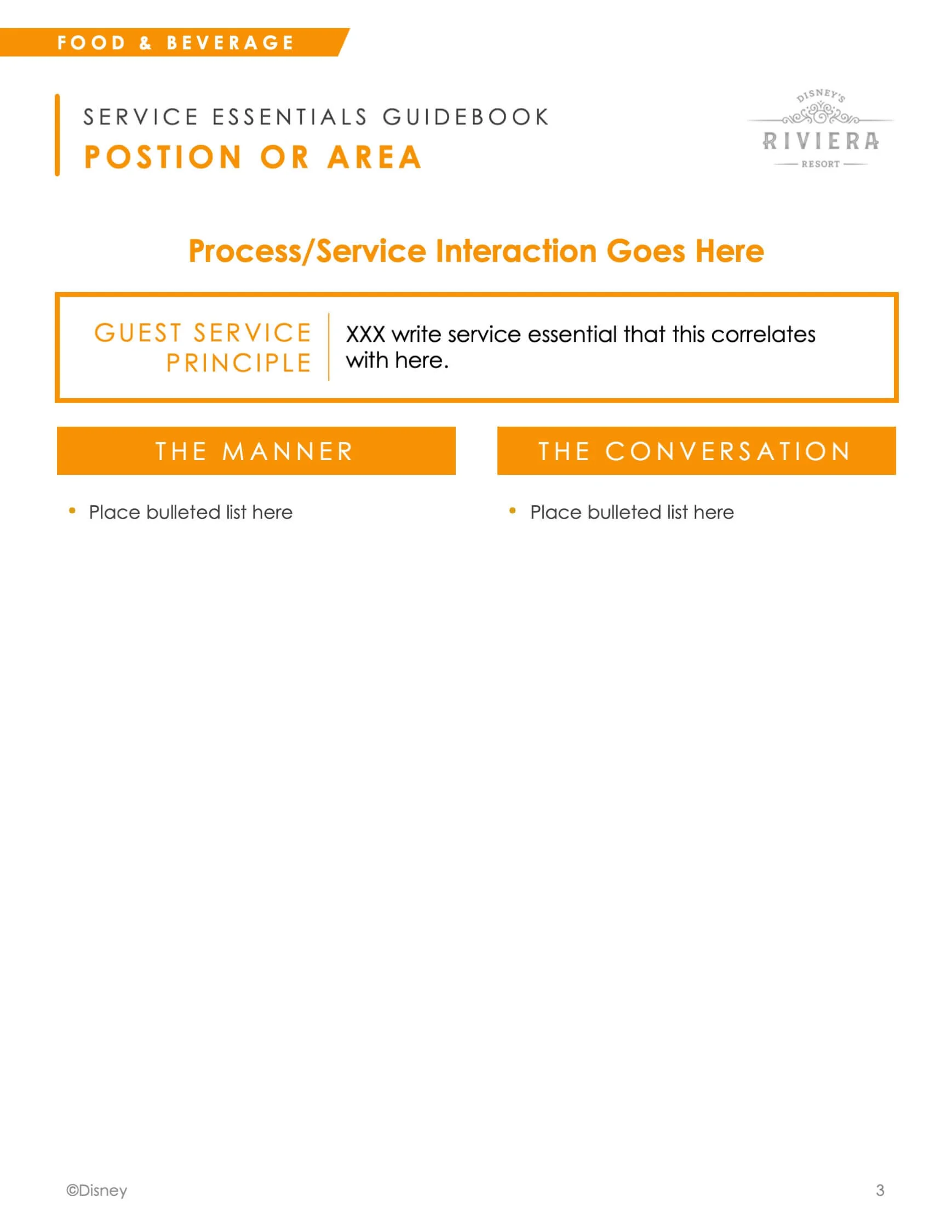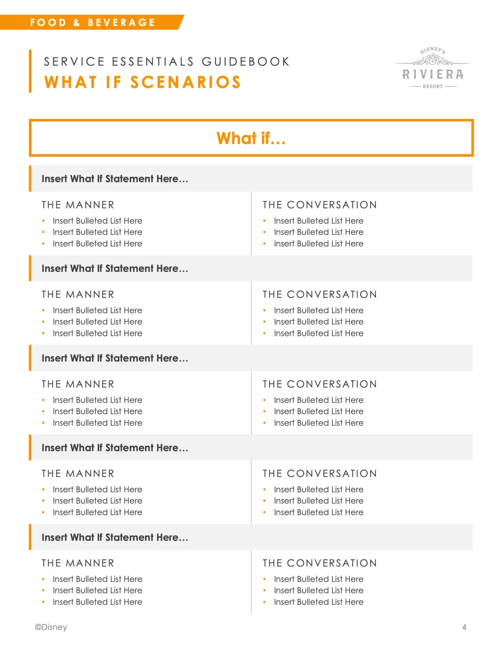 During the Fall of 2019, I worked with an external consultant and an Operations Training instructional designer to develop a course that supports increased Guest service in Walt Disney World’s resorts. This class was later adapted to be used across all locations and lines of business. I was responsible for the story, development, and design of the presentation and print collateral. Below is the process and completion of the pilot course.
